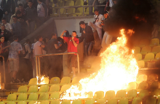 中新网4月9日电 塞尔维亚足球联赛8日的一场比赛,贝尔格莱德游击队主场与红星队的同城德比战后,红星队球迷所在的北看台起火。
