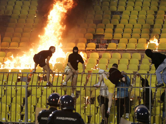 组图:塞尔维亚一足球看台赛后起火(2)
