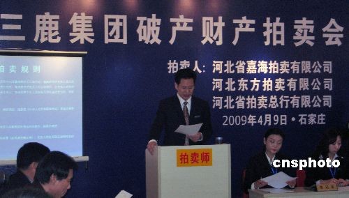 4月9日,河北省嘉海拍卖有限公司作为主拍单位,与河北省东方拍卖有限公司、河北省拍卖总行有限公司共同进行拍卖三鹿部分资产。