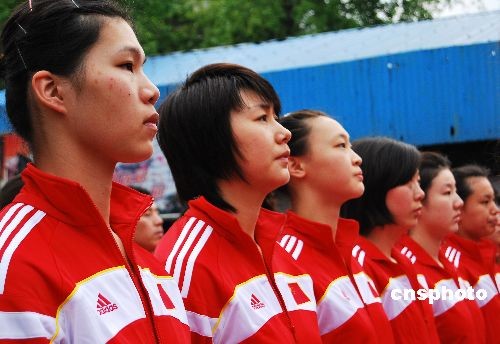 蔡斌担任主教练的新女排举行升国旗仪式(2)