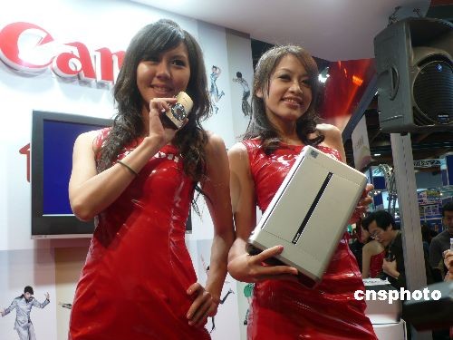 图为美女主持热力推销数码产品。中新社发 邓敏 摄