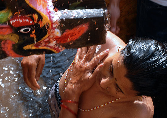 图:尼泊尔印度教信徒集体沐浴庆祝传统节日(6)