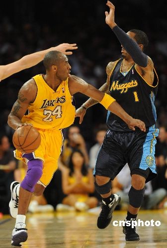 四月九日晚,NBA西部赛区在洛杉矶展开厮杀,主场作战的洛杉矶湖人队以一百一十六比一百零二战胜丹佛掘金队。湖人球星科比·布莱恩特独得三十三分。