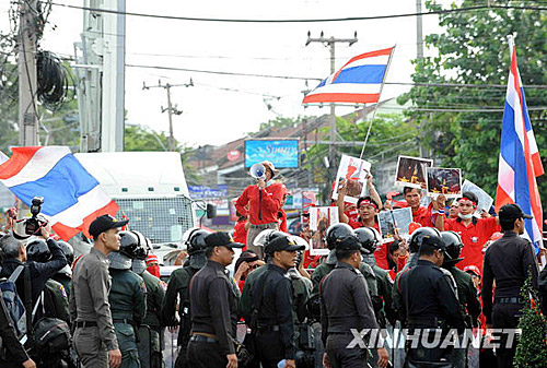 4月11日,在泰国帕塔亚,警察和反独裁民主联盟示威者在出席东盟系列峰会的外国代表团驻地外发生对峙。由于泰国国内局势的原因,第12次中国和东盟领导人会议未能按原计划于当地时间11日上午9时举行。