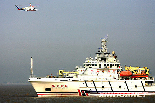 图:上海紧急搜救打捞雪龙号舰载机坠江失踪人员(2)