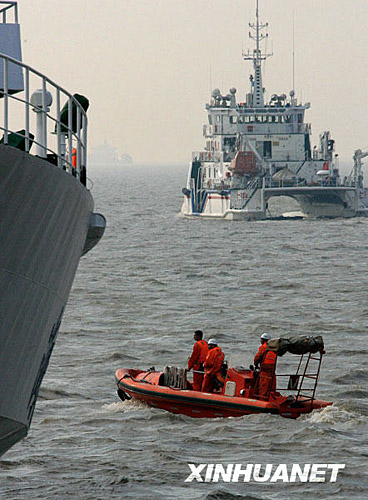 图:上海紧急搜救打捞雪龙号舰载机坠江失踪人员(4)