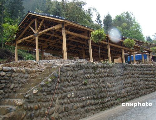 由国务院侨办援建的中国第一个“侨爱家园”本月底将在四川广元青川县关庄、竹园两镇建成。约有一百六十户农户将受益于“侨爱家园”项目,并在建成后搬进新居。该项目的最大特点是采用经济便宜、抗震坚固、建造迅速、节能环保的现代轻型木结构建筑。图为在建中的“侨爱家园”农房。中新社发 王萌 摄