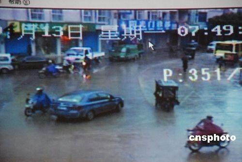 图为男子袭击运钞车押运员事件案发现场录像(鼠标处)。中新社发 周利朔 摄