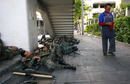 泰国士兵躺在桥下休息。
