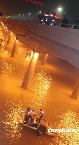 图:轿车“飞”入桥下 坠桥人员搭软梯获救(2)