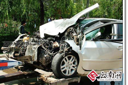 4月14日上午11点40分许,昆明官南路和小街的交叉路口处,一辆公交车与一辆轿车发生碰撞,造成轿车车头严重变形。而公交车为避让轿车,行驶到河堤边后失控落入路旁的明通河。