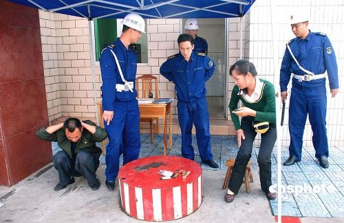 4月13日15时许,一名中年男子在海军南海舰队驻广西北海某部门前,持仿真枪械对一女出租司机实施抢劫,执勤卫兵迅速启动岗哨反袭击及反抢夺预案,将歹徒当场擒获并移交警方。中新社发 张卫军 摄