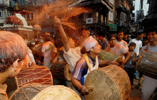 组图:尼泊尔群众互相抛洒粉末庆传统新年(2)