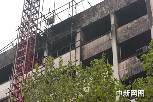 图为着火大楼局部。艾启平 摄