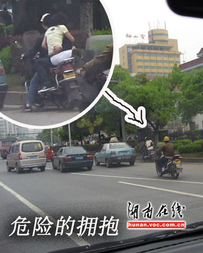 “这样子坐摩托车也太危险了!”今天(16日),一则《街头追拍:情侣打摩的堪比杂技表演》的帖子引起了网友的关注。图中,一对情侣模样的青年男女对坐在一辆正在行驶的摩托车上,互相拥抱着在马路上“大晒”亲密无间,网友称相比较说是坐车,这对情侣更像是在演杂技。