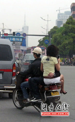 图:情侣街头打摩的 坐姿堪比杂技表演(4)