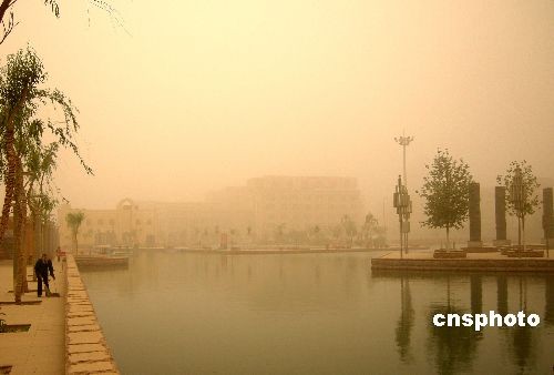 4月17日早,新疆吐鲁番市笼罩在浓浓的沙尘中,空气中弥漫着呛人的沙土味,给市民出行带来很大影响。从4月16日下午开始,受新疆南疆地区天气影响,新疆吐鲁番盆地遭遇大风袭击,吐鲁番市区风力达到6级以上,气温从35摄氏度下降至28摄氏度。傍晚开始,大风卷起的沙土开始漫天弥漫。中新社发 姜浩 摄