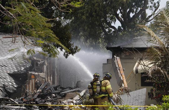 中新网4月18日电 美国一架小型运输机十七日上午坠入佛罗里达州罗德岱堡的一所民宅,机上仅有的一名驾驶员不幸遇难。失事飞机从罗德岱堡市的一个机场起飞后不久,飞行员即报告出现故障。飞机返回机场途中失控坠入距离机场不到四公里处的一所民宅,将这座房子劈成两半并引发火灾。