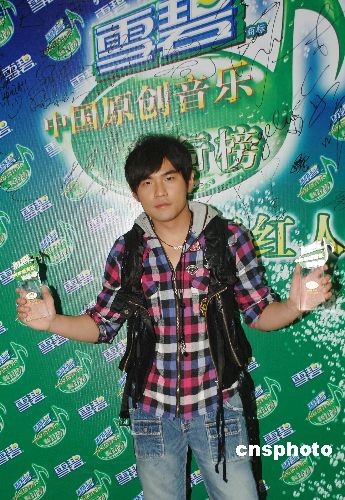 周杰伦亮相2009雪碧音乐榜,称期待与宋祖英再一次合作。中新社发 李学仕 摄