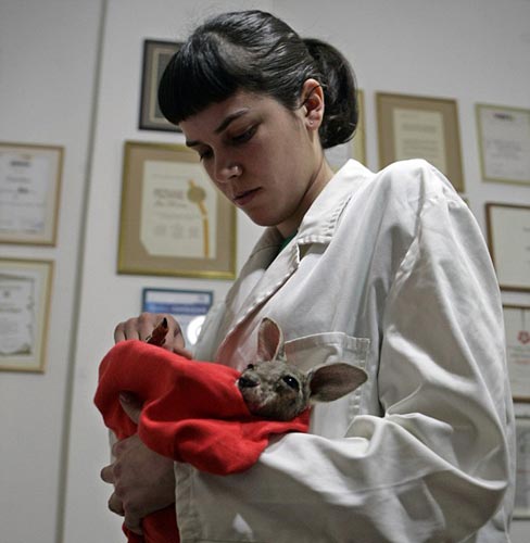 护理人员采用了很多特殊的方法才能让小袋鼠继续生存下去。