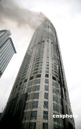 组图:南京一幢50余层办公楼发生火灾 (3)