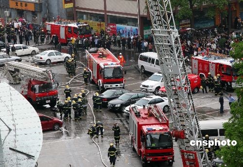 组图:南京一幢50余层办公楼发生火灾 (4)