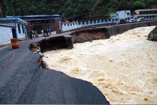 2009年4月19日,贵州省雷山县遭遇强降雨引发山洪,境内308省道部分路面被山体滑坡阻断、888县道部分路基被山洪冲毁,交通中断,汽车受阻。雷山县通往凯里市的公路完全断交。目前,雷山公路管理段和雷山县交通局启动应急预案,组织人员和机械设备进行紧张抢修。(陈沛亮)