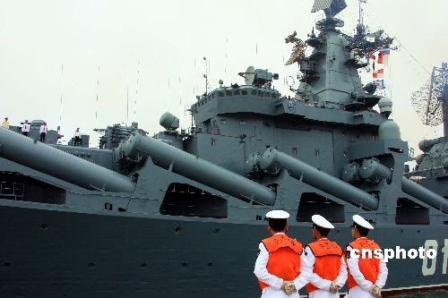 俄罗斯“瓦良格”号导弹巡洋舰抵青岛参加海上阅兵