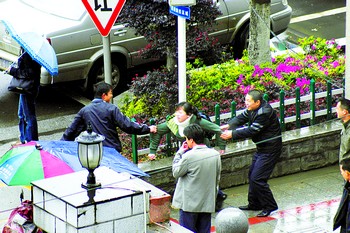 今年以来,有多位读者反映,在民航大酒店(长沙)前有一伙人,对进出酒店的乘客采取堵、拖、抢等方式,强行拉客。记者自上个月27日起至本月16日,对这种强行拉客现象进行了四次暗访。