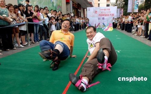 高跟鞋跑步大赛趣味横生。中新社发 彭寰 摄