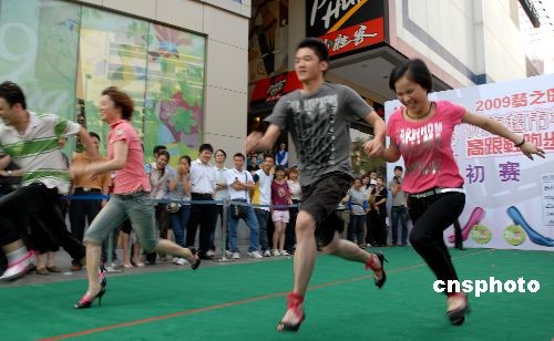 高跟鞋跑步大赛趣味横生。中新社发 彭寰 摄
