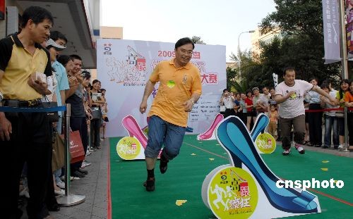 高跟鞋跑步大赛趣味横生。中新社发 彭寰 摄