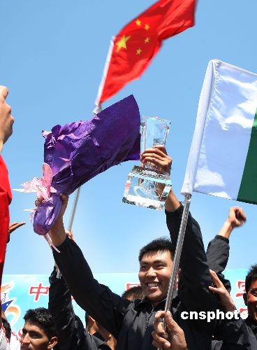 图为大家庆祝中国海军队获得第一名。中新社发 宋吉河 摄