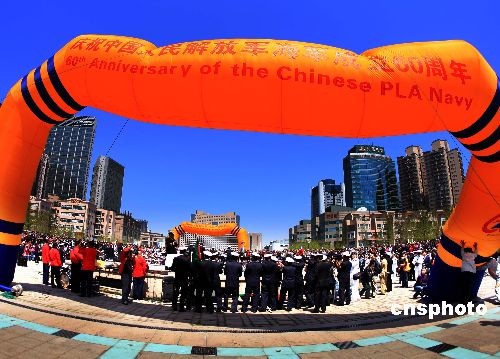 庆祝中国人民解放军海军成立60周年多国海军活动,4月21日在青岛“五四”广场举行“欢乐的海洋”军乐队联合演出,韩国、俄罗斯、印度、美国、孟加拉、巴西来访舰艇乐队和中国海军军乐队、北海舰队军乐队参加了联欢演出。中新社发 宋吉河 摄