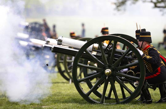 组图:英皇家骑兵鸣放礼炮庆祝女王寿辰(2)
