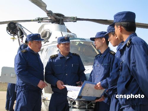 4月17日上午,海军航空兵某机场停机坪。数架舰载直升机一字排开,机务人员正在忙而有序地做飞行后全面检查。连日来,海军某舰载机部队机务官兵,以高昂的训练热情,一流的工作标准,迎接人民海军60华诞。他们针对近期重大任务多、训练任务紧的实际,坚持干部复查把关、机械日卡片和定检卡片归零、读卡制等各项保障规定,加强危险性、多发性故障的分析和跟踪处理,不断加强装备管理,提高保障质量,扎扎实实做好各项保障工作,装备完好率进一步提高。