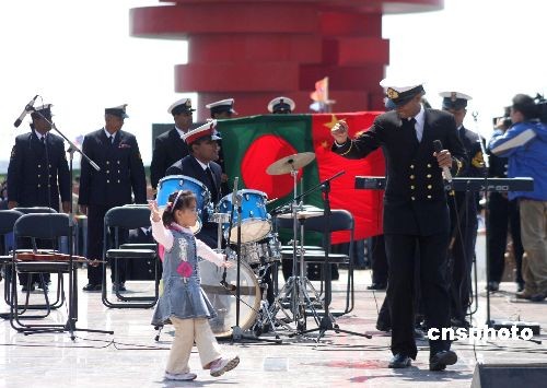 4月21日,来自美国、俄罗斯、韩国、印度、孟加拉国、巴西、中国等7国海军的8支军乐团在山东青岛联合举行以“欢乐海洋”为主题的多国海军军乐团联合演出活动,用不同风格的音乐架起一座友谊之桥。该活动为庆祝中国海军60周年纪念活动之一。