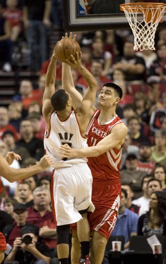 组图:姚明饱受犯规困扰 火箭不敌开拓者(2)