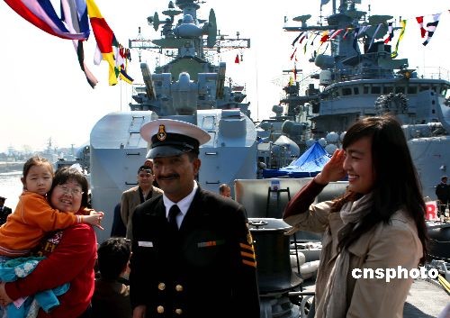 4月22日,停靠在青岛解放军海军码头参加庆祝中国人民解放军海军成立60周年多国海军活动的各国舰艇,对青岛市民开放。中新社发 宋吉河 摄