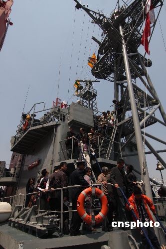 4月22日,纪念中国人民解放军海军成立60周年多国海军军舰开放日活动在山东省青岛港码头举行。青岛港开放大港一号码头、二号码头和七号码头供1500名持参观券的市民参观部分来华军舰。中新社发 郭国权 摄