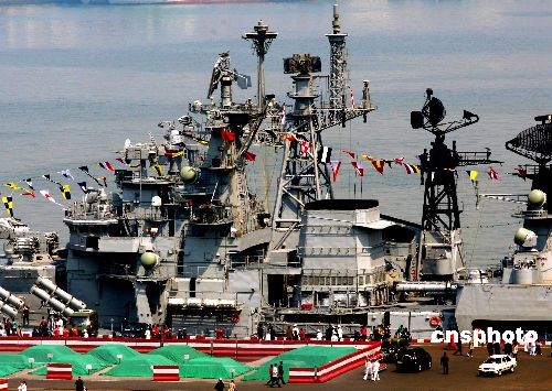 4月22日,停靠在青岛解放军海军码头参加庆祝中国人民解放军海军成立60周年多国海军活动的各国舰艇,各国海军官兵相互登舰参观,同时各国舰艇对青岛市民开放,让众多各界人士在参观中大开眼见。中新社发 宋吉河 摄