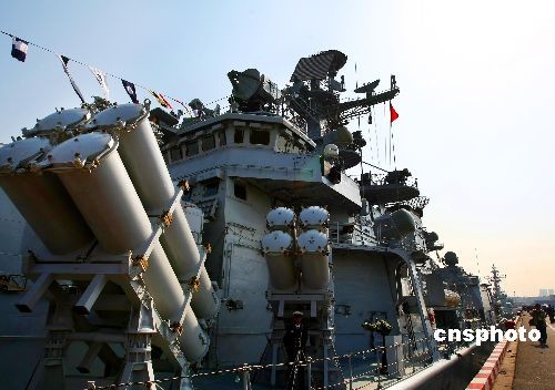 4月22日,停靠在青岛解放军海军码头参加庆祝中国人民解放军海军成立60周年多国海军活动的各国舰艇,各国海军官兵相互登舰参观,同时各国舰艇对青岛市民开放。中新社发 宋吉河 摄