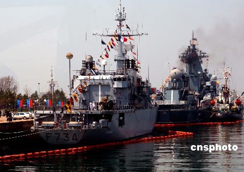 4月22日,停靠在青岛解放军海军码头参加庆祝中国人民解放军海军成立60周年多国海军活动的各国舰艇,各国海军官兵相互登舰参观,同时各国舰艇对青岛市民开放,让众多各界人士在参观中大开眼见。中新社发 宋吉河 摄