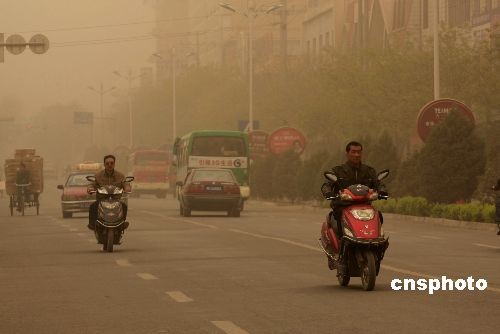 4月23日,甘肃省武威市受北方强冷空气南下影响,自西向东出现了今年以来最强区域性沙尘天气。气象台在沙尘暴出现前及时通过手机短信和气象声讯电话发布了沙尘暴橙色预警信号,提请社会公众提前做好预防工作。中新社发 姜爱平 摄