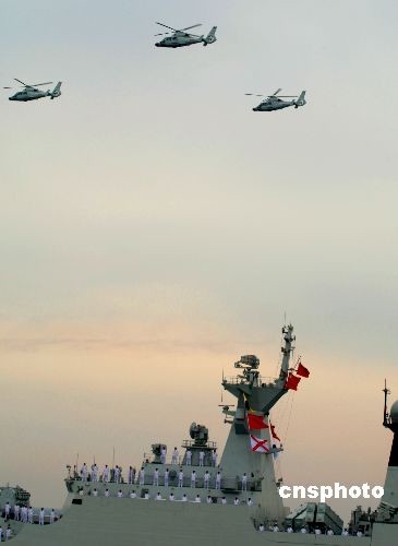 胡锦涛主席出席海上阅兵活动检阅海上战舰编队