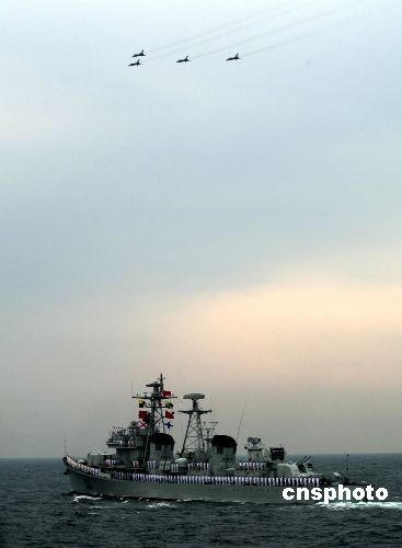胡锦涛主席出席海上阅兵活动检阅海上战舰编队