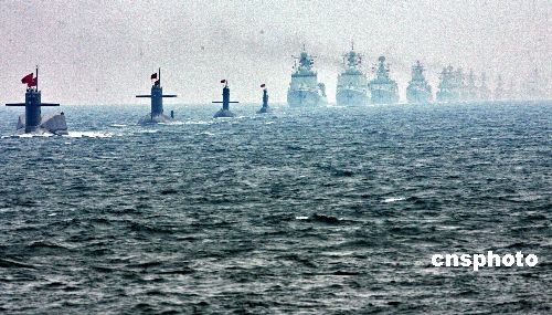 胡锦涛主席出席海上阅兵活动检阅海上战舰编队