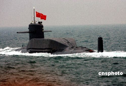 图为接受检阅的中国海军核潜艇。中新社发 宋吉河 摄