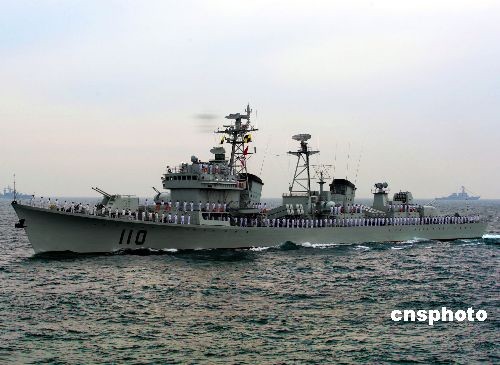 胡锦涛主席出席海上阅兵活动检阅海上战舰编队