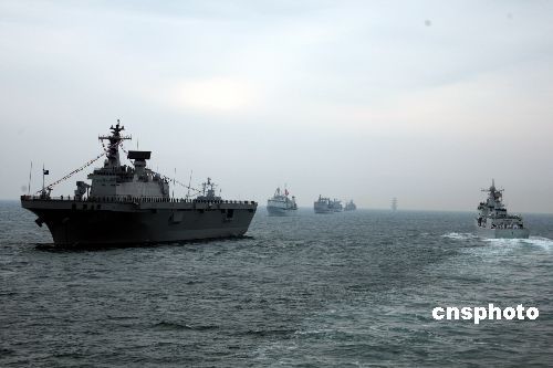 胡锦涛主席出席海上阅兵活动检阅海上战舰编队